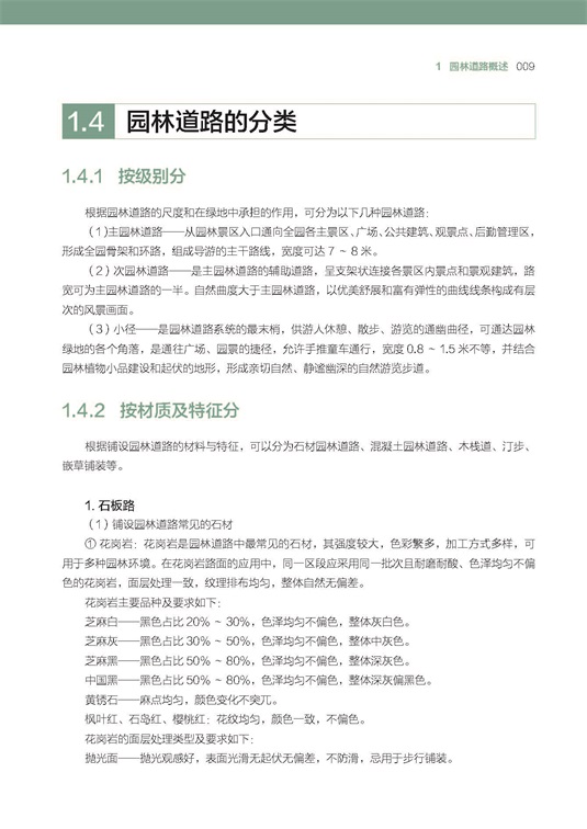 园林道路作为风景园林环境中的重要组成部分,其设计与建设与风景园林场地建设与否的成功息息相关。但是在实际工程中,经常由于设计、施工以及养护过程中经验欠缺或对建设环节把控不够严格,从而导致园林道路的选线不合理、道路质量不高或使用过程中破坏严重。特别是园林道路的施工管理方面,一直没有统一的标准规范,纵观整个行业,设计、施工、养护的水平参差不齐。本书基于笔者二十多年来的工作经验,对园林道路的设计与施工以及养护作了总结与分析,是一本关于园林道路的设计、施工、管理的导则性图书。它对园林道路的建设进行了系统性的阐述,并辅以详细的案例图片、设计方案, 让读者直观地了解到园林道路的类型、材料、构成以及设计方案,并对反面案例进行分析解读。