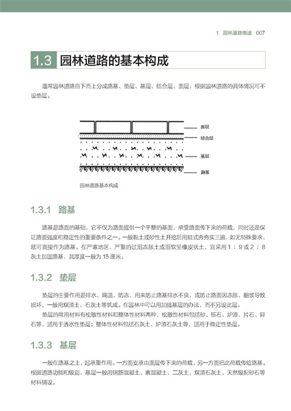 《园林道路设计与施工》基于作者在风景园林行业多年的工作经验,在园林道路设计与施工的实际工作中,总结出的对园林道路设计与施工要点及易错点,并以大量CAD图纸和施工图片进行解析说明。本书共分为三部分,第一部分介绍了园路的类型、构造、构成,并对不同材料的园路进行详细的解析。第二部分作为本书的重点部分,主要介绍了园路的设计原则和设计方法,并以施工图的方式展示了不同类型园路的设计方法和构成,还展示了园路不同组成部分的设计与施工方案。第三部分是园路施工的具体实操内容,对不同材料的园路的施工方法及施工中应注意的事项进行了详细解析,并指出园路施工中可能出现的问题,同时给出了解决方案。