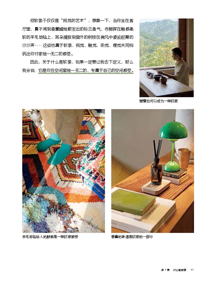 ◆光影、触感、气味、声音、窗景都能成为营造软装氛围感的细节