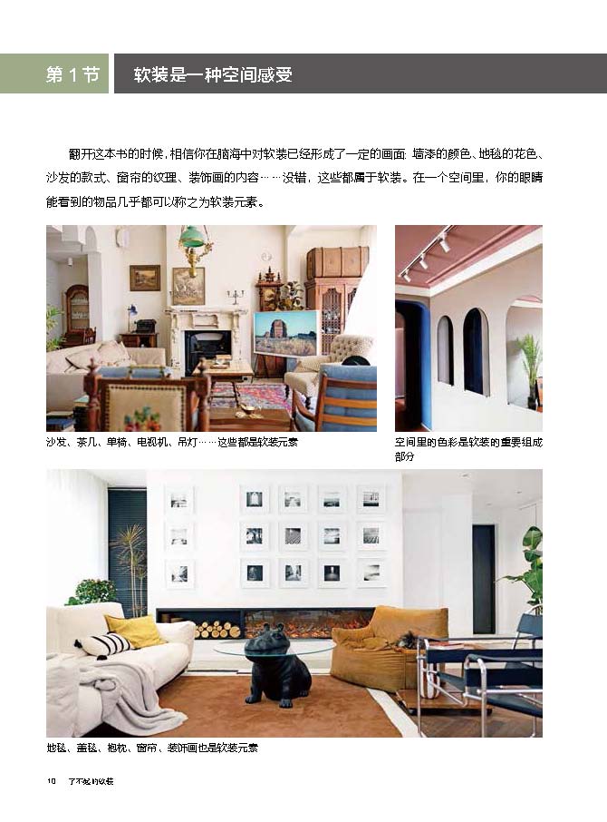全书共分六个章节,第1章是什么软装;第2章是找到属于你的色彩,作者通过实例来告诉读者如何进行色彩搭配并找到自己的专属色;第3章是九大关键元素,打造专属你的空间,也是本书的核心所在,作者详细论述了家具、家用电器、布艺、装饰画、绿植等的搭配技巧;第4章是营造家的氛围感,别忽略了这五个细节,包括光影、触感、气味、声音、窗景;第5章是收纳的美感;第6章如何给家拍出好看的照片。附录部分还特别写了百搭的软装单品,比如单人沙发、灯具、收纳工具等,希望读者可以从中获得更多搭配灵感。