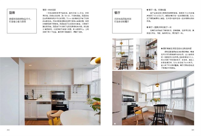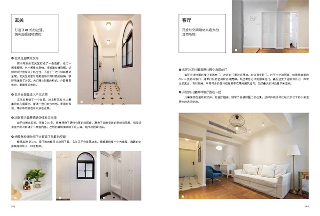 书中她展示了自己设计的12个小户型案例,首先就是她自己的小家,设计这个小家的时候,她的宝宝还不足一岁,房间内的细节处处都透露着一个宝妈的小心思。舒适的椅子适合宝妈哺乳,打通的次卧方便照看婴儿,次卧和客厅联通的大空间,适合孩子活动。方便孩子的同时,年轻夫妇的生活品质并没有下降。采光通透的主卧、阳台上的浴缸、独立的衣帽间、造型优美的餐椅,处处彰显着设计师不凡的品味。其余11个案例,每个都是设计师根据业主的特点量身打造的,仔细研读这些案例,读者都很有受益。每个案例后面的小贴士非常实用,是打造自己小家的实用技巧。