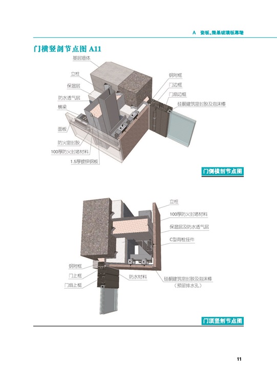 本书介绍的幕墙种类齐全,具体包括瓷板、微晶玻璃板幕墙,陶板幕墙,石材蜂窝板幕墙,纤维水泥板幕墙,高压热固化木纤维板幕墙。每一种幕墙又按不同的连接方式进行节点的分类绘制,具体分类包括:标准横竖剖节点图,层间横竖剖节点图,凹窗横剖节点图,凹窗竖剖节点图,平窗横竖剖节点图(固定扇),门横竖剖节点图,90°转角横剖节点图,135°转角横剖节点图,女儿墙收口、勒脚收口节点图,与室外吊顶相接竖剖节点图,侧封边、与雨篷相接节点图,与其他材质幕墙相接横竖剖节点图,变形缝节点图,等等。