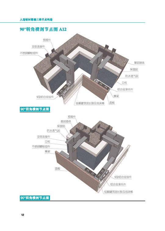 本书依据《人造板材幕墙工程技术规范》(JGJ 336—2016)编制而成,严格依据国家建筑标准设计图集《人造板材幕墙》(13J103—7)绘制相关节点的三维立体图,在图上标记材质、尺寸、说明等。在平面图、立面图、详图上采用引出线来讲述个构造节点的做法或工艺要求等。