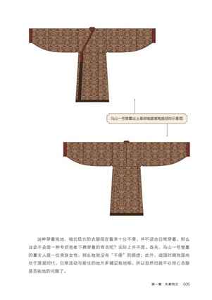 为增强代入感,以大家耳熟能详的屈原、李清照等历史知名人物及所涉及的场景作为引子,从相关的文物、壁画等素材入手,介绍当时的社会环境、工艺技术对服饰的影响,展示、还原出服饰结构示意图及实物样式。每章的后半部分还会提供模特团队穿着以上衣物时的层次示意图,尽可能直观还原出古人实际穿着效果。