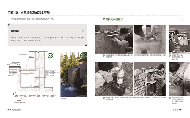 从体例上讲,收录近百种收边实例,以提问的方式,从“发现问题→找到问题原因→技术解决方法→具体施工步骤→实例展示”的编排方式,一目了然。