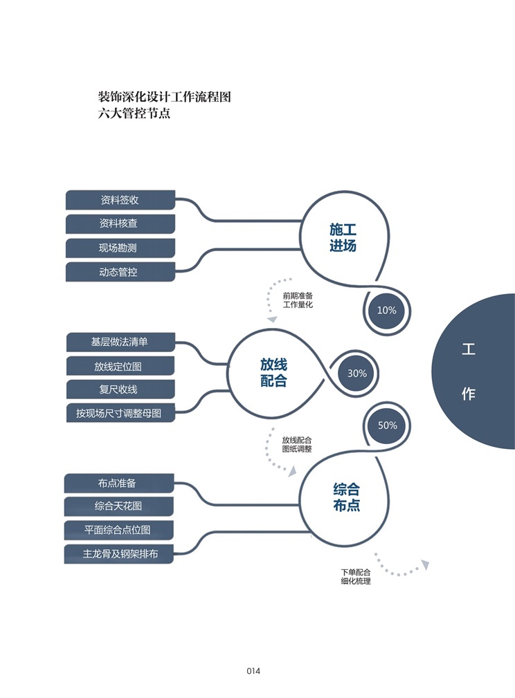 5.直击施工进场、放线配合、综合布点、下单图审、动态调整和竣工资料六大管控节点,规范深化设计工作流程,归纳深化设计质量通病与防范,轻松掌握深化施工全流程。