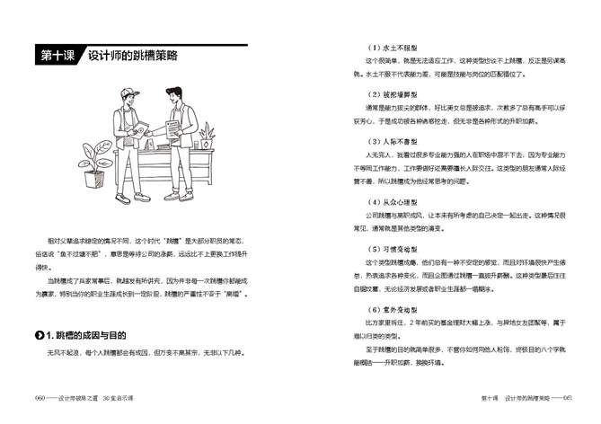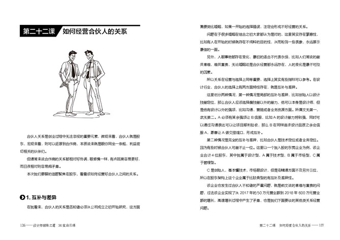 本书是作者结合自身经历写就的经营笔记,书籍分为“设计与职场”和“创业与经营”两部分。其中“设计与职场”篇涵盖了专业提升、发展方向与自我规划,作者用浅显的语言剖析当下的设计行业,让正在经历焦虑、彷徨的人们更加客观的看待自己的现状与行业的发展。而“创业与经营”篇则是基于设计师在专业上趋向成熟之后,希望将职业发展为事业,走向创业方向时所遇到的困难,包括但不限于创业时机、公司建立、客户来源以及年度目标等,作者结合自身经历更有针对性的进行解答,为广大怀抱创业理想的人们理清思路,破除迷茫,提供助力。