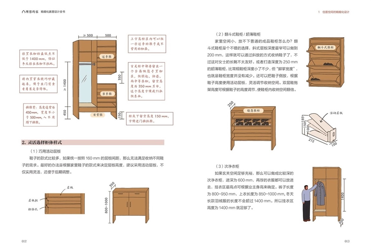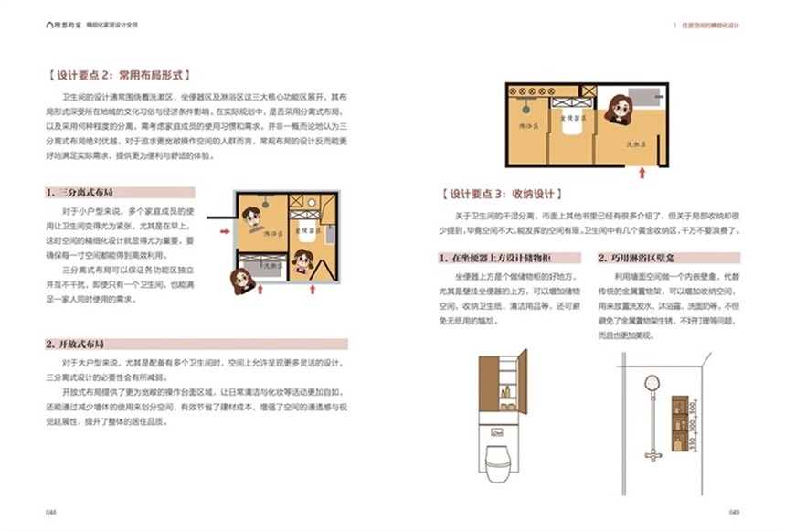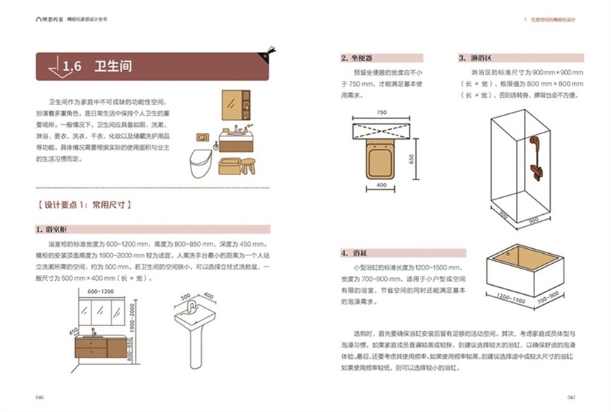 ★quanmian且细致地剖析六大住居空间的布局形式、设计要点、尺寸设计和收纳设计,搭配漫画手绘图及尺寸详解,还给居住者一个便捷、舒适的理想家。