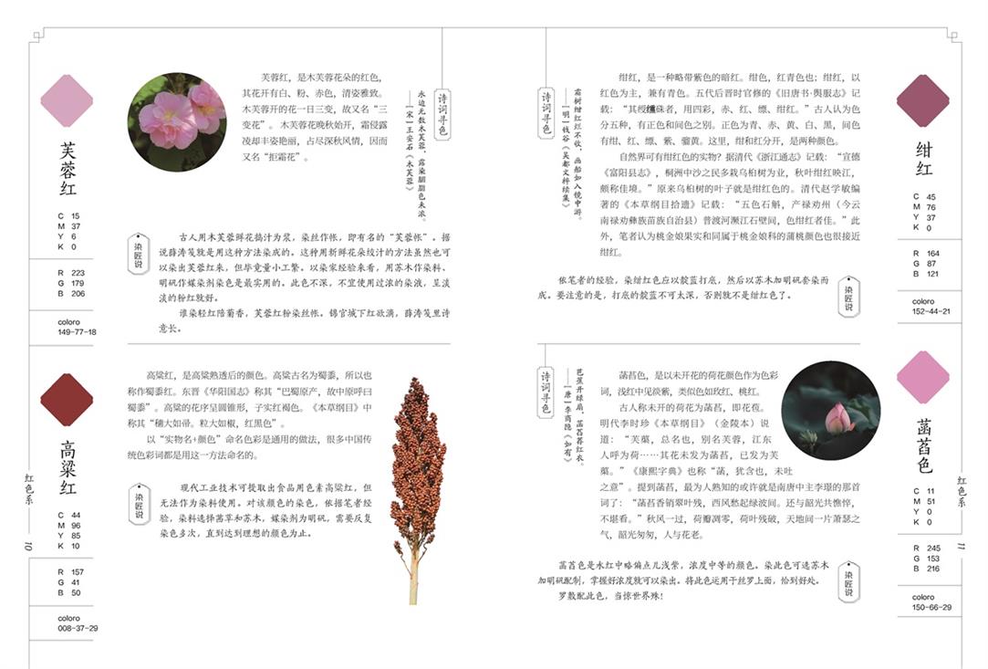 值得一提的是,本书采用了多种色彩标注方式,除了常见的RGB和CMYK色值,还特别加入了Coloro色值,以确保色彩在现代设计和工业生产中的还原度。无论是文化研究者、设计师,还是对中国传统色彩感兴趣的读者,都能在这本书中找到独特的灵感。