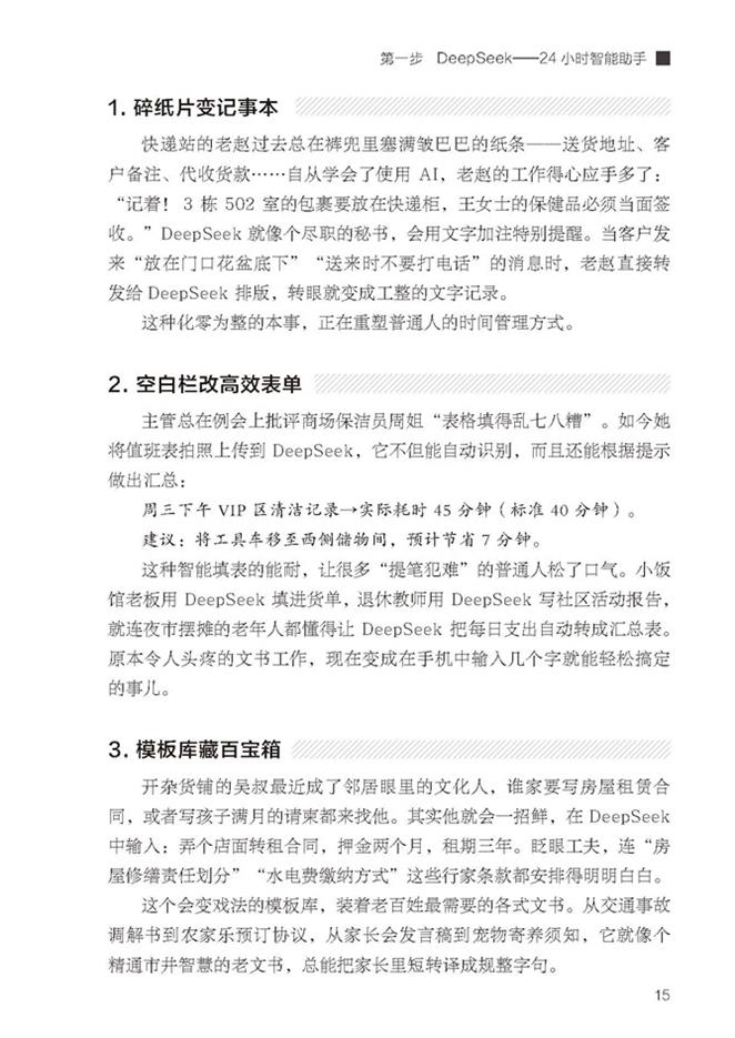 书中的“角色扮演提问法”“连续追问技巧”等进阶秘籍,将助你突破普通用户的认知边界,成为真正的AI协作高手。翻开本书,让DeepSeek智能助手为你每天多赚2小时!