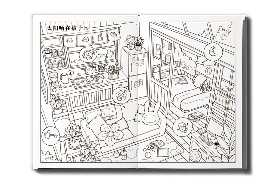 图书采用高品质特种纸纸张,适合彩色铅笔、水彩等多种工具,填色体验流畅,可兼顾手写文字。同时选用圆脊精装工艺,可平摊,带来美好的使用体验。