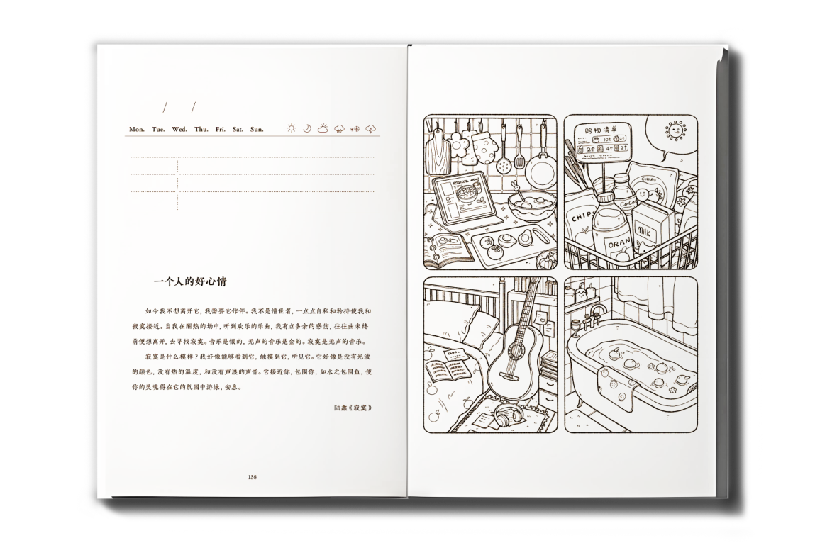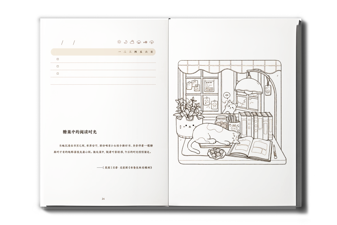 特色“留白”设计,结合自由涂鸦页,鼓励记录灵感随笔记录生活,周边贴纸、氛围感透卡等随书周边,拍照自带滤镜,小红书、朋友圈出片率 100%,让“治愈”从私人体验延伸到社交分享。