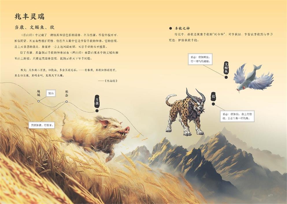它精选五章经典内容,以“图鉴”形式梳理仙山、神兽、方国等核心元素,既保留原文的古朴神韵,又用现代视角解读背后的文化隐喻——西王母的威严、共工触山的悲壮、扶桑与若木的日月神话,所有这些散落在古籍中的光怪陆离,都化作可触可感的生动图景。