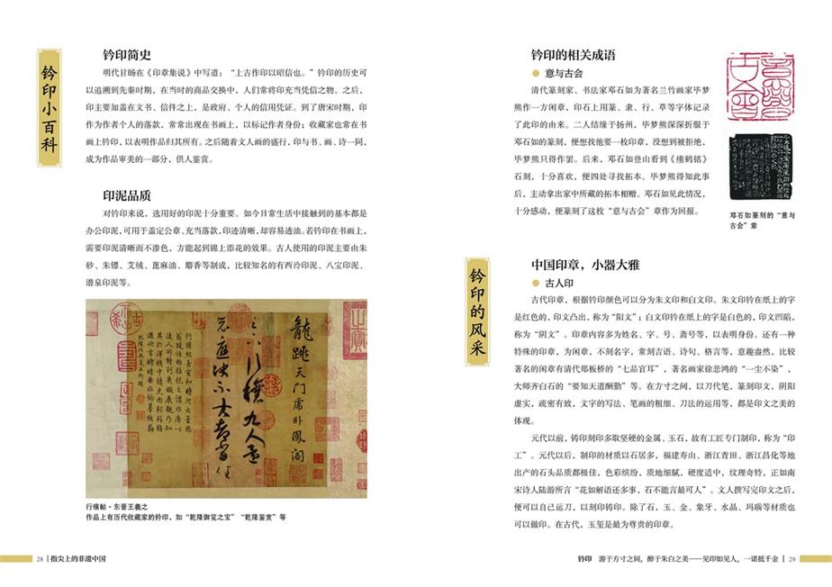 本书以非遗文化为脉络,遍览文房四宝、点茶、漆艺、年画、唐三彩、瓷器、玉雕、锻银、刺绣、紫砂、油纸伞、木梳、植物染、古琴、风筝、活字印刷、木偶、泥塑、中国结、剪纸、舞龙舞狮等二十余项非遗技艺,每项非遗文化均从发展简史、制作工艺、闻名典故、非遗风采等方面进行解析,让读者不但感受到这些传统工艺的魅力,还可进一步了解中国传统的民俗风情、生活美学等。本书借器物故事、工艺细节与美学温度,重现千年技艺的生成逻辑、文化密码与日常惊艳,让老手艺在字里行间“活”起来,成为可触摸的文明血脉。可以说本书开启了一场穿越古今的文化之旅,也是一次心灵与艺术的深度对话。