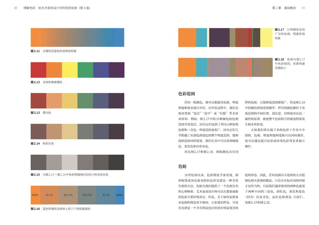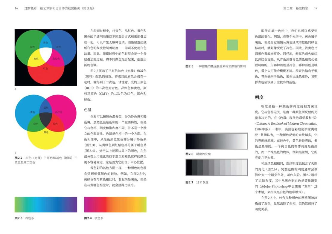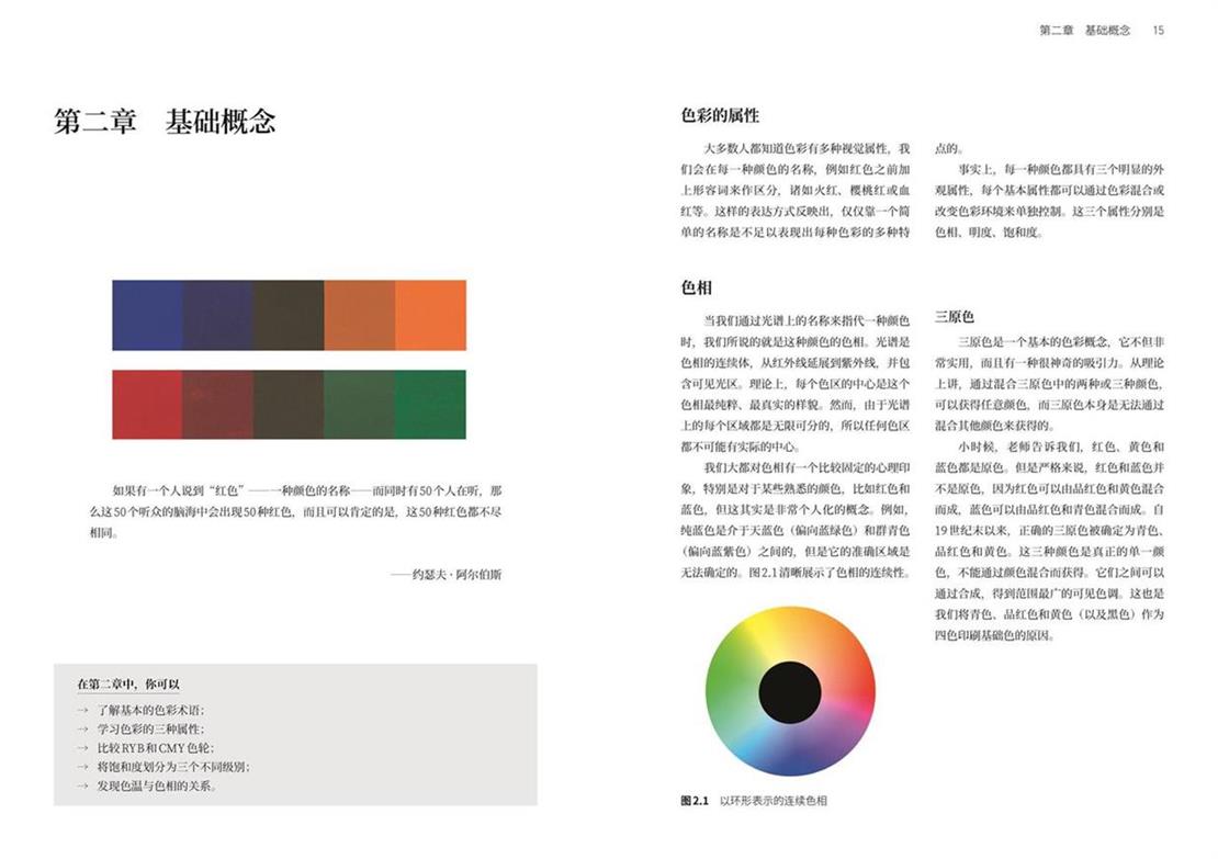 1. 本书突破了传统色彩理论书籍的单一讲述模式,构建了“手工作业”与“数字作业”并行的双轨学习路径。从基础概念(色相、明度、饱和度)到配色方案、色彩错视研究,通过拆解绘图背后的设计逻辑、表现策略及常见难点,使读者能直观学习并应用于自身设计实践,有效规避设计盲区。