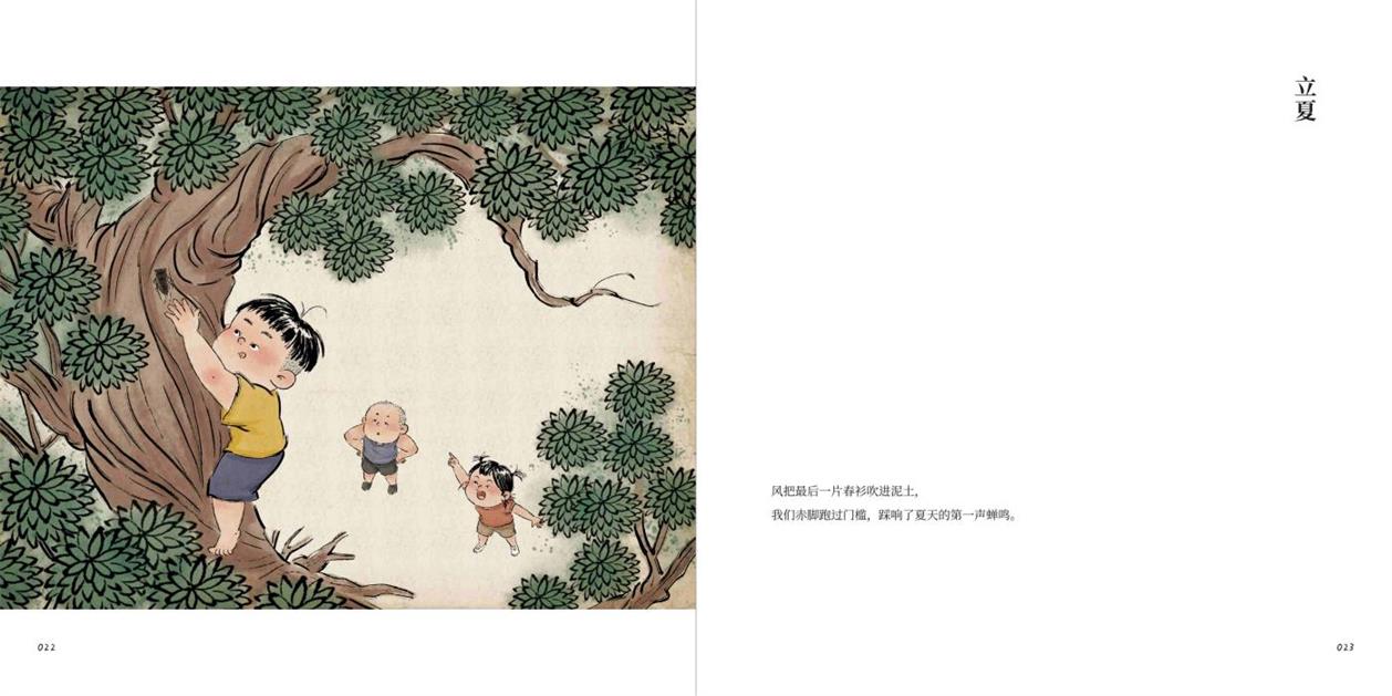 本书《纸鸢飞过,我们仍是孩子》是一部以童年记忆为主题的图文创作集,全书围绕童年生活的美好片段展开,分为“岁时记”“旧物志”“好伙伴”“念亲恩”四卷。“岁时记”以四季为序,细腻记录不同时节中的童年乐趣:春天“一脚踩进溪水抓蝌蚪,把心里那点皱巴巴游得平平展展”;夏日有“老蒲扇摇出的懒洋洋的风”;秋天是“摘柿子时那一跳一跳获取的甜”,冬日的味道则藏在“烤红薯金黄的瓤里,一寸一寸暖透身体”。这些文字与画面共同编织出童年与自然相亲的质朴欢愉。