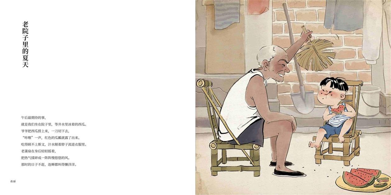 “旧物志”重现那些陪伴我们成长的游戏与物件:玻璃弹珠、翻花绳、四驱车等主题,童年游戏承“好伙伴”与“念亲恩”则将视角转向人情与亲情:校门口小吃摊“升腾着最初的人间烟火”,父亲的肩膀是“最初的巨人”。这些看似平常的瞬间,在时光沉淀后,显露出生活最本真的温暖质地。全书通过一幅幅充满情感温度的插画与一段段诗意凝练的文字,邀请读者一同重返那个“眼里有光”的纯真年代,在记忆的柔光中,重新发现平凡生活里始终流淌着的诗意与深情。