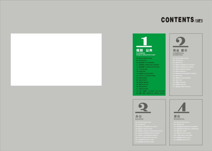本套丛书按照建筑功能进行了分类,分别有公共规划、商业展示、办公和居住四个部分。在每本书中,又设置了更具体的归类,集中展示了最新的建筑设计表现成果。