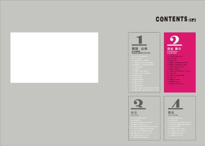 本套丛书按照建筑功能进行了分类,分别有公共规划、商业展示、办公和居住四个部分。在每本书中,又设置了更具体的归类,集中展示了最新的建筑设计表现成果。
