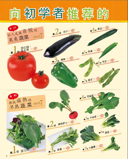 按照蔬菜特性,分为果类蔬菜、早熟蔬菜、厨房蔬菜、强抵抗力蔬菜四类。方便读者按照自己的喜好,查找适合的蔬菜种植。(可随书附赠菜籽)