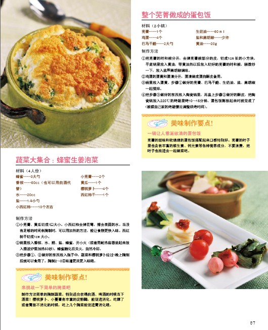 3. 附有漂亮的菜谱,每种蔬菜的时尚吃法也有介绍。