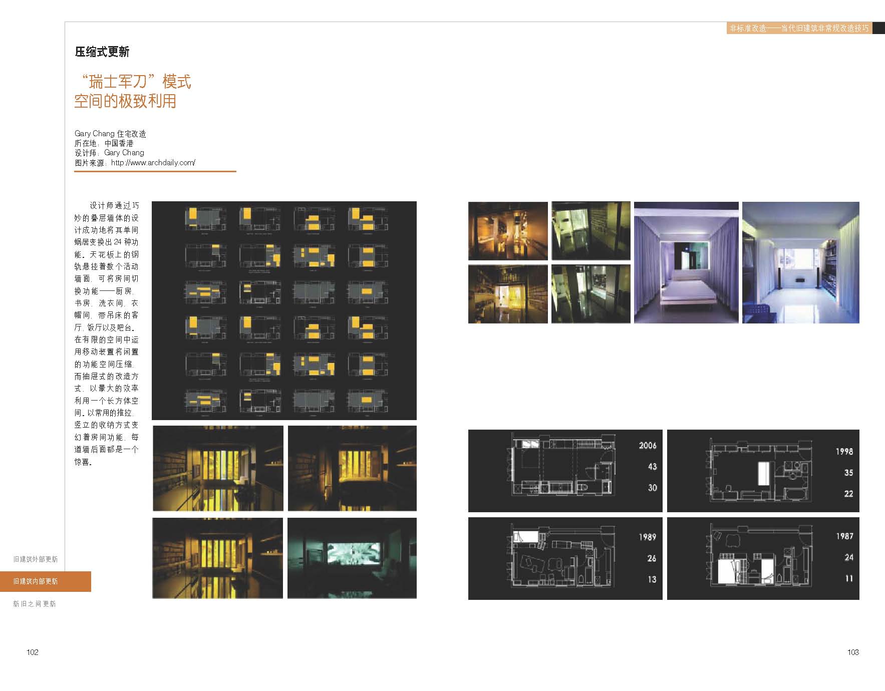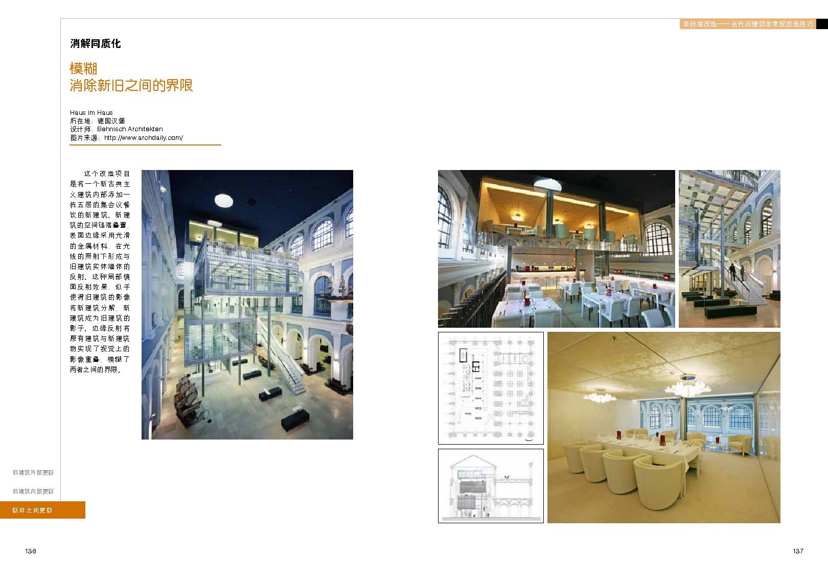 本书以大量富有创意的旧建筑改造更新案例为基础,通过对近些年的旧建筑改造更新案例进行分析。从创意性案例中寻找它们之间的规律,并从这些规律中归纳出具体手法。从三个方面对旧建筑改造更新进行归纳:旧建筑的外部更新手法,旧建筑的内部更新手法,新旧建筑之间的更新手法。并分别对每部分的具体手法进行设计技巧提炼,对同类手法之间微妙差别进行具体研究,对学生学习和设计相关建筑具有启发意义。