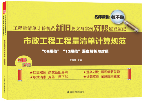 本书基本框架为16开横版,全书以横栏表格形式将新旧规范分栏左右对照,并对一些新旧规范区别加以诠释。力求做到一读就懂,一学就会。为使读者更加清楚清单工程量计算规则变化,在每个章节后面还配有计算实例对照。(主要是列举一些工程量计算规则发生变化的的计算实例进行对照)